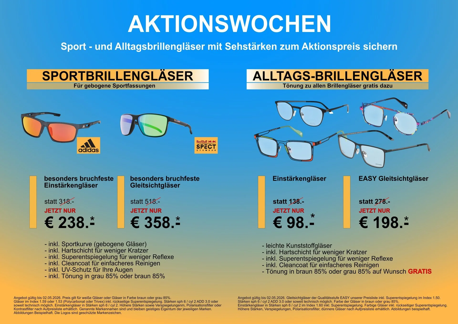 Sportbrillen und Sonnenbrillen zum AKTIONSPREIS 👓☀️